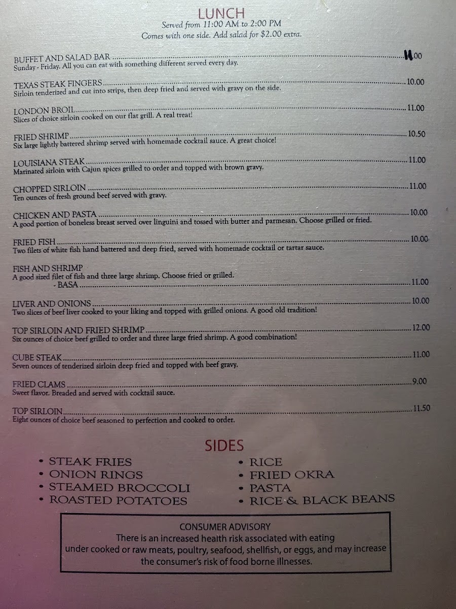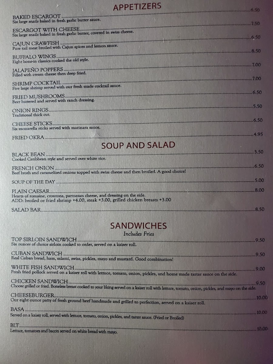 Nestled at 2079 SE Hwy 70 in the charming town of Arcadia, FL, Reef N Beef Restaurant and Lounge invites you to indulge in a culinary adventure that celebrates the best of land and sea. Our menu is a treasure trove of enticing options, featuring mouthwatering specialties like creamy Escargot and crispy Fried Okra that perfectly pave the way for a delightful dining experience. Craving something hearty? Dive into our succulent Broiled Seafood Platter or the bold flavors of our Cajun Crawfish. Don't forget to explore our All You Can Eat Salad Bar, packed with fresh, vibrant choices to complement your meal. Whether you're in the mood for savory Fried Chicken, a juicy Mushroom and Swiss Burger, or tender New York Strip, every dish is crafted with care to ensure your visit is nothing short of memorable. Pair your meal with our famous Lemonade with a shot of Tequila for a refreshing twist. Come hungry and let your taste buds explore the incredible flavors at Reef N Beef!